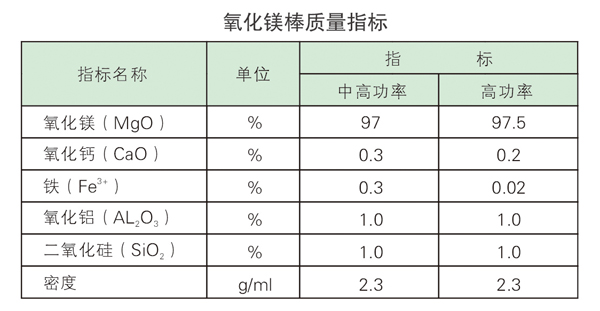 高純氧化鎂棒是我公司1999年根據(jù)客戶要求自主研發(fā)的專用于單端電熱管的產(chǎn)品,具有絕緣性能、耐壓性能、熱傳導(dǎo)好等優(yōu)點,已被廣東、興化等地主要單端電熱管生產(chǎn)廠家所認(rèn)可,大量使用。